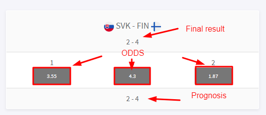 - In second example you receive 1 points for correct guessed loser team goals + 1.04 Odd for correctly